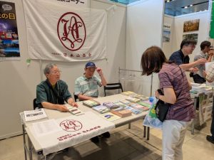 恒例行事となった「夏山フェスタin 福岡2025」が6月28日(土)と29日(日)に電気ビル共創館で開催された。毎年、北九州支部は会場の整理など会場運営の支援を行っており、2日間で述べ13人の会員が参加した。土曜日は会場の一つのブースが「登山相談コーナー」として設けられたので、ブースの壁に日本山岳会の旗を掲げ、テーブルには支部の旗をおいて、北九州支部の「入会のご案内」リーフレットと2025年度の山行計画一覧を用いて、日本山岳会と入会の説明を行った。何人かは、支部の山行に参加したいなど興味をもたれた方もいたので、支部のホームページで情報を得るように助言をした。夏山フェスタへの参加は、日本山岳会と支部のPRや支部会員を増やすために有意義であった。