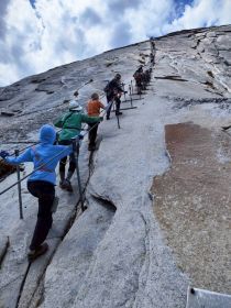 川床から一向平コースは一番険しいルートで急坂も有りましたが、メインの「ゴジラの背」を見たくて参加しました。写真で見たゴジラの背は、ゴツゴツした岩。予想通りで緊張しましたが、ワクワク感も有り楽しかったです。下りも1ヶ所長いロープの急な下りがあり、確認したくて振り返って見てみるとやはり凄い。矢筈ヶ山からの下りも、柱状節理の石が横に長く、足を置くのに幅が狭くお尻を付けて慎重に下りました。