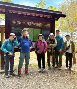 我々は和歌山熊野古道小辺路コース約70㌖、基本所用時間約30時間を3泊4日、6人で完歩しました。小辺路コースを4区間に分け担当割りを事前に決め、各自コース案内役として記録と感想を記しました。
